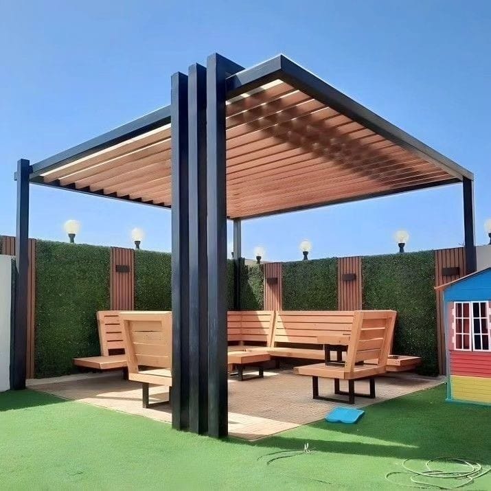 - استخدم برجولة بسيطة (2×2 أو 3×3 متر).