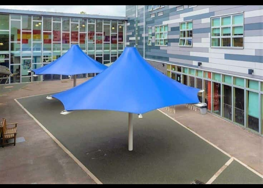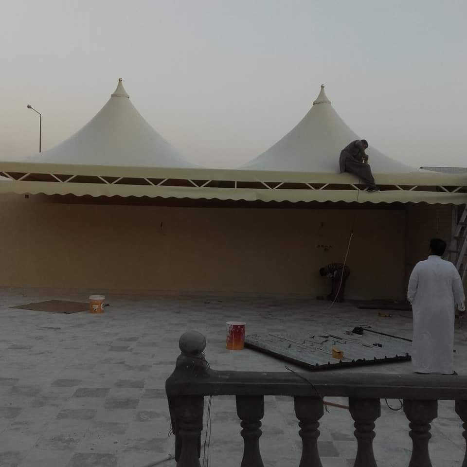 - المظلات ذات التصميمات الهندسية المبتكرة: تعتمد على أشكال فريدة وجذابة تضفي طابعًا عصريًا ومميزًا على المكان.