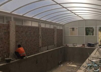 يعد تغطية المسابح بالزجاج من أفضل أنواع التغطيات الذي يمكنك استخدامها على الإطلاق. كما أن هناك إقبال ملحوظ عليها من قبل العملاء وتتميز هذه التغطيات بشكلها الشفاف المميز والرائع مما يسمح بمرور الضوء إلى الداخل بينما يعمل على منع الأشعة الضارة. وذلك ليتمكن الأشخاص الموجودة بالداخل بالاستمتاع بالمناخ المناسب لهم بالإضافة إلى أنه يزيد من جمال وفخامة المنزل بشكل عام.