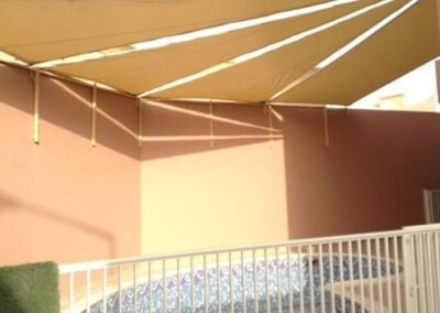 نقوم بتقديم خدمة تركيب مظلات خارجية لتغطية المسابح بكافة أحجامها وأنواعها ومساحتها تبعًا للمكان الذي سوف يتم تركيبها في وحسب رغبة العميل. ويتم كل هذا باستخدام مواد وخامات عالية الجودة تتميز بقوتها ومتانتها كما أنها ضد التلف لتتحمل العوامل الجوية الصعبة.