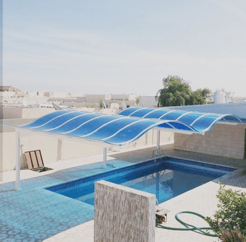 4. مظلات مسابح بولي كربونيت (شفافة أو ملونة)