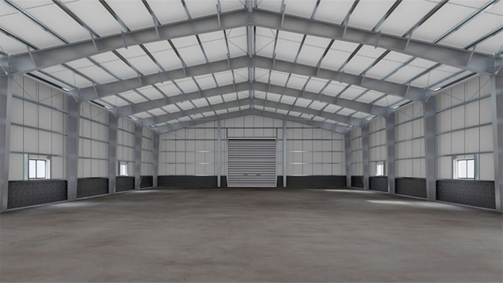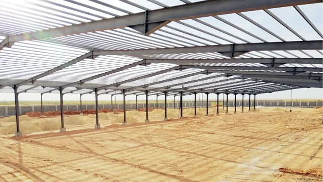 - تقليل الأعمدة الداخلية: استخدام هياكل فولاذية قوية يسمح بتقليل الأعمدة الداخلية، مما يتيح مساحة مفتوحة أكبر وسهولة الحركة داخل الهناجر.